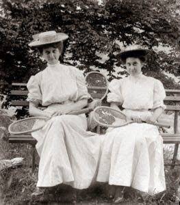 As mulheres ainda usavam vestidos pesados, longos e apertados durante os jogos de tênis.